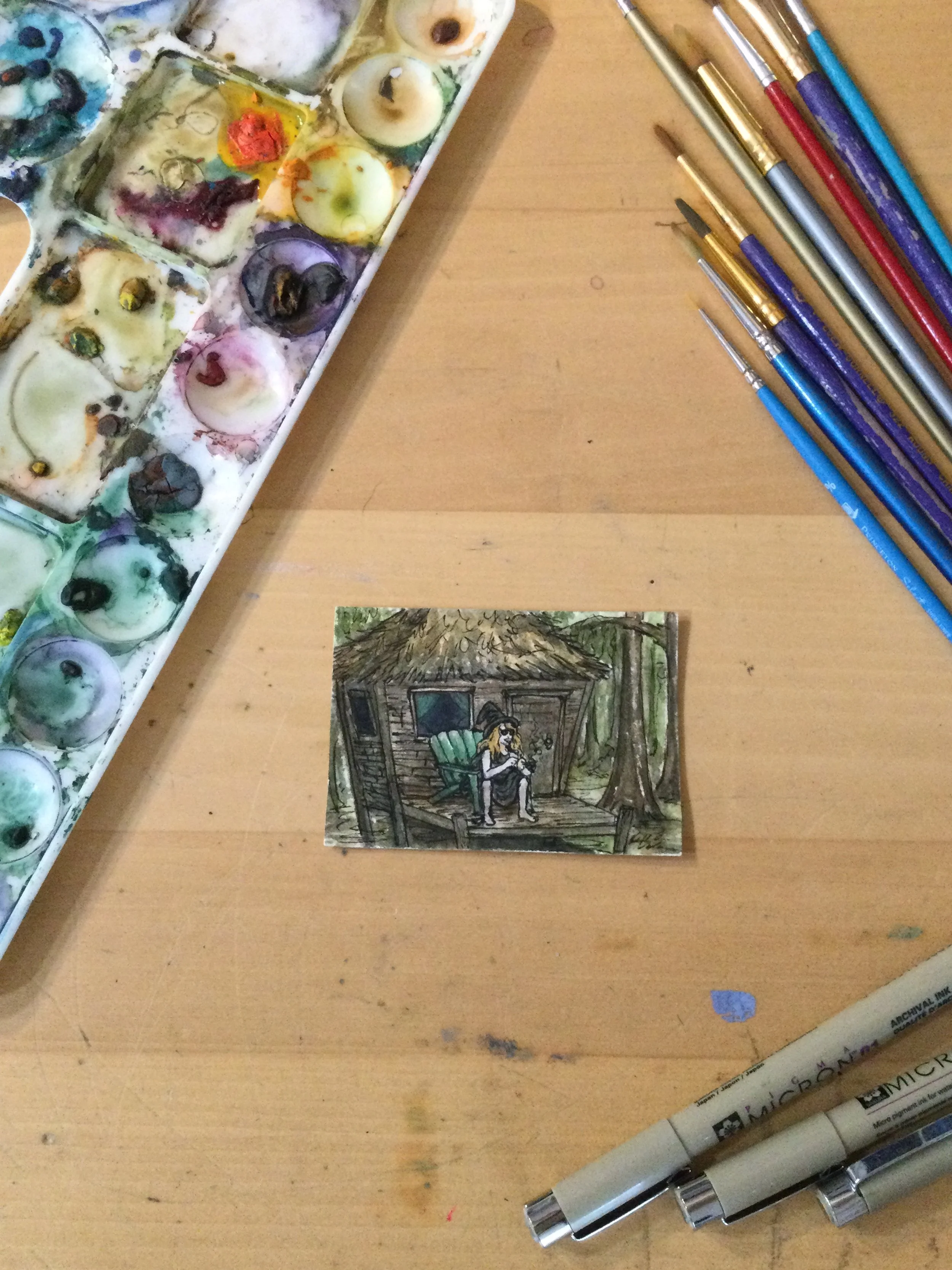 All work shown here are original paintings and drawings, each is signed and dated. Elizabethan Duchess Otter $50.00 Sold Elizabethan Lord Otter $50.00 Sold Surfs Up $50.00 Sold Practical Magic Foxes $50.00 Rosie the Fox $50.00 Lewis Crow and Coyote Clark $50.00 Sold Westward Bound $50.00 Llama No Drama $50.00 Speaking with Fans $50.00 Sold Sherlaaaaaaak $50.00 Jareth, The Goblin King $50.00 Sold Big Water Spud Buds $50.00 Buddy the Flying Ace $50.00 Karaoke- All By Myself $50.00 Disco Moth $50.00 Top Penguin $50.00 Sold Welsh Gentlemaaaaaaan $50.00 Pink Hippo Vigilante $50.00 Sold Pinky up Classy $50.00 Sold Rose Garden Party Dress $50.00 Black-eyed Susan Party Dress $50.00 Hydrangea Garden Party Dress $50.00 Iris Garden Party Dress $50.00 Apples $50.00 Oranges $50.00 Blueberries $50.00 Uncle Saaaaaaaam $50.00 Swamp Witch $50.00 Sold Balance $50.00 Sold Coworker Called in Sick $50.00 Strawberry Snack $50.00 Big Horned Toad $50.00 Temptations $50.00 Sardine Ice Cream $50.00 Sold Laundry Day $50.00 King of the Hill $50.00 Gem Corn $50.00 Friends $50.00 The Huntress $50.00 The Observer $50.00 Look Ma No Hands - Original Painting $50.00 Sold Brewmaster Bunny $90.00 Bartender Bunny $90.00 Impressionist Hare $90.00 Cherry Blossom $65.00 Lavender Foxgloves $65.00 Yellow Foxgloves $65.00 Pink Echinacea #2 $65.00 Yellow Echinacea $65.00 Snapdragon #1 $65.00 Sold Snapdragon #2 $65.00 Sold Dahlias #2 $65.00 Dahlias #1 $65.00 Pink Echinacea #1 $65.00 Fuchsia #1 $65.00 Fuchsia #2 $65.00 Yellow and Multi Cone Flowers $65.00 Red Capped Mushrooms $65.00 Yellow Cap Mushrooms $65.00 Red Cap Mushroom $65.00 Chanterelle Mushrooms $65.00 Tiny Frame for Tiny Paintings $10.00