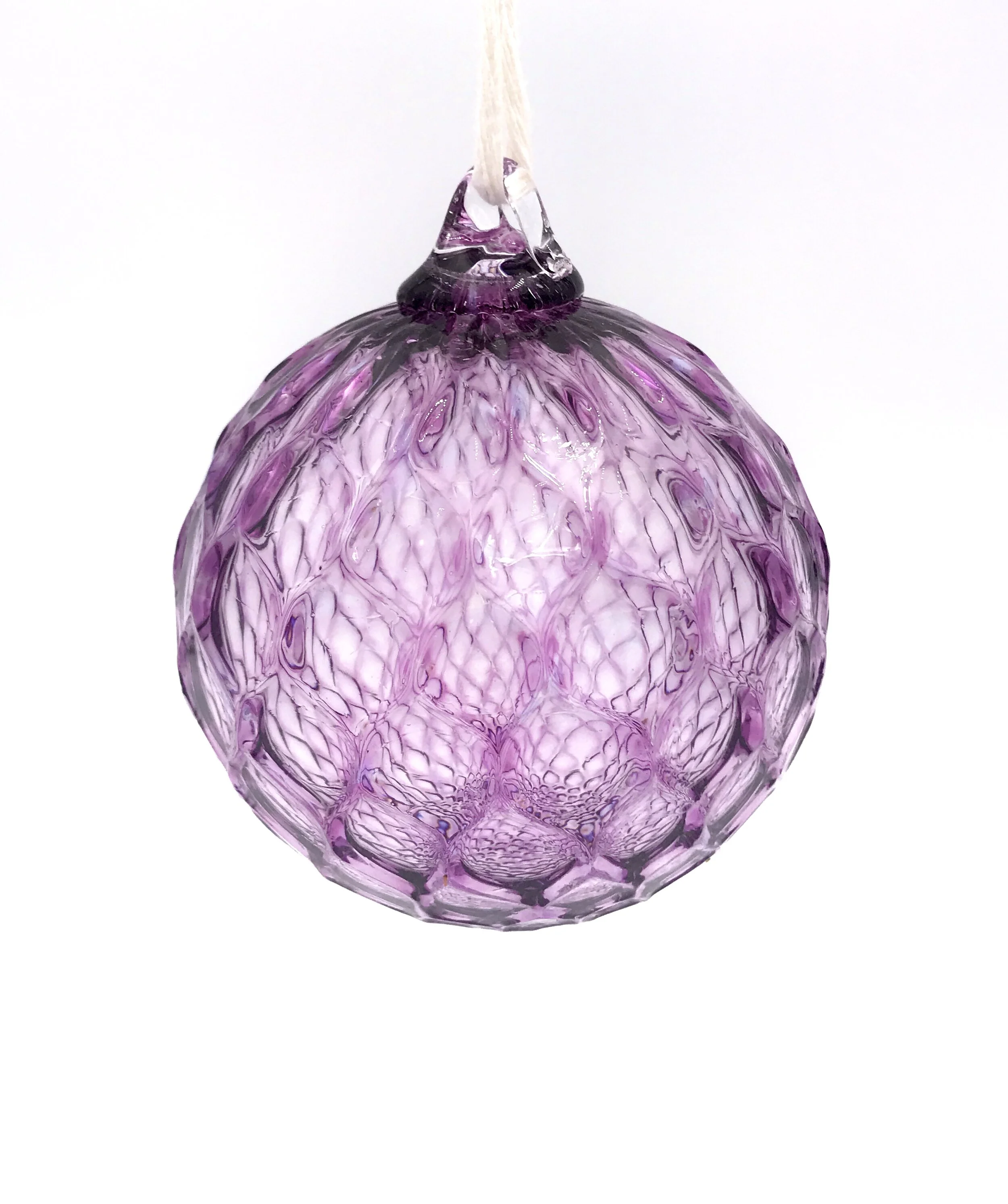 A beautiful deep transparent amethyst purple ornament with lots of diamond facets that reflect the light,